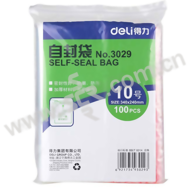 DELI/得力 10号透明自封袋 3029 340×240mm 100个 1包