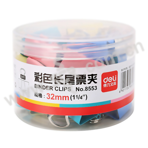 DELI/得力 彩色长尾票夹 8553 32mm 混色 24只 1筒