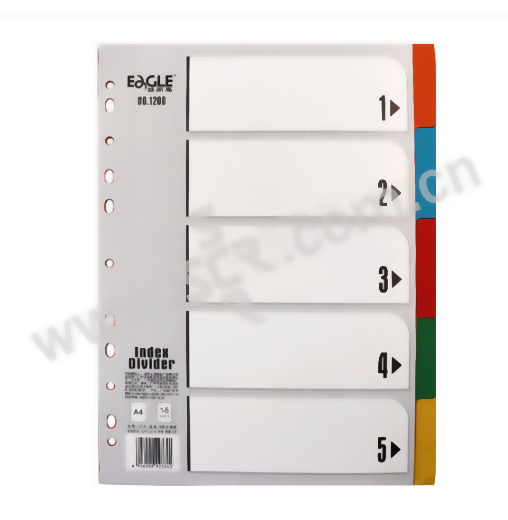 EAGLE/益而高 彩色分类纸 1200 A4 橙蓝红绿黄混合 5页 1包