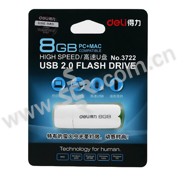 DELI/得力 高速U盘 3722 8G USB2.0 白色 1只