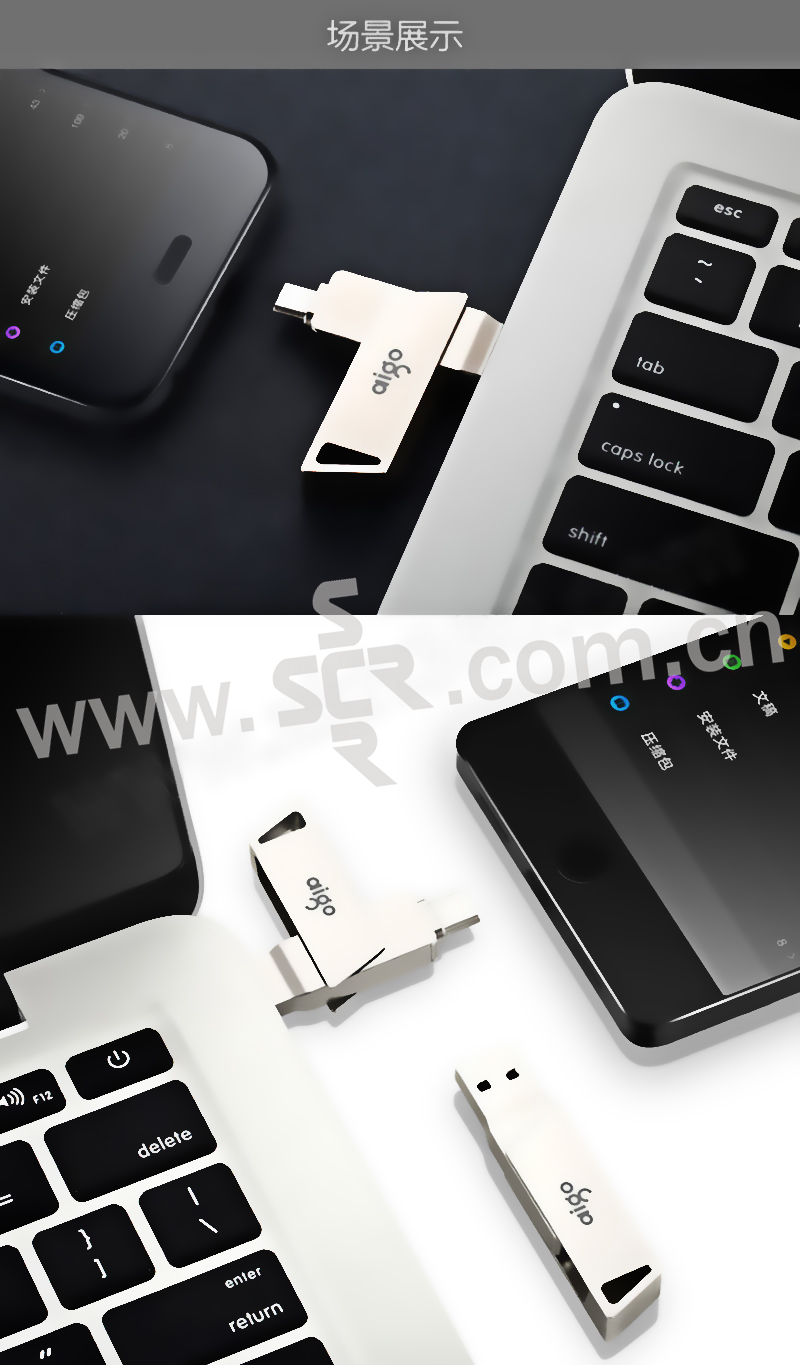 AIGO/爱国者 手机U盘 U350 64G USB3.0/OTG/Type-C 银色 1个