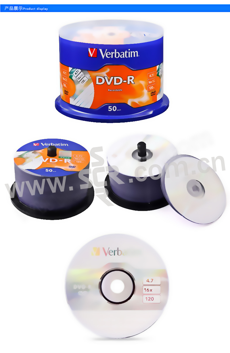 VERBATIM/威宝 光盘 16X神州龙DVD-R 50片 1桶