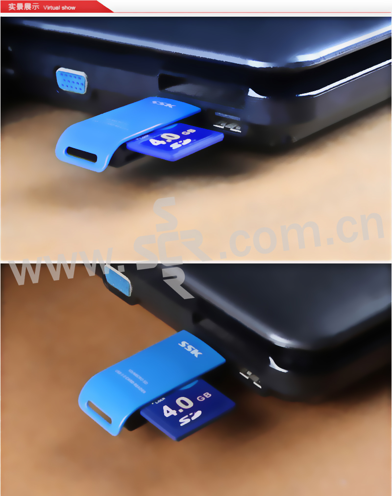 SSK/飚王 二合一读卡器(蓝色) SCRM331 USB3.0 TF卡/SD卡 1个