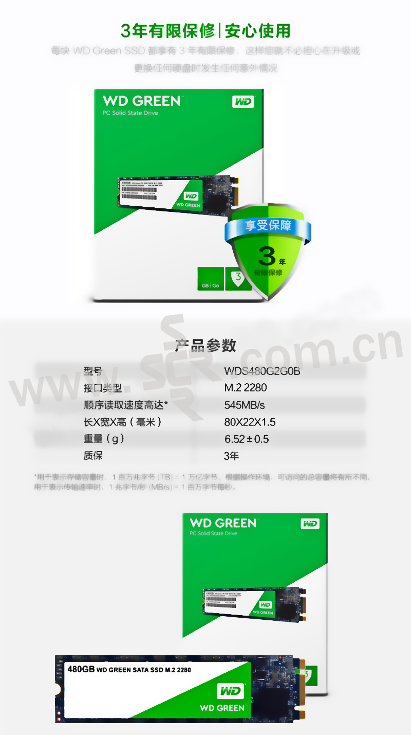 WD/西部数据 固态硬盘 Green系列 480GB M.2接口 SATA总线 1个