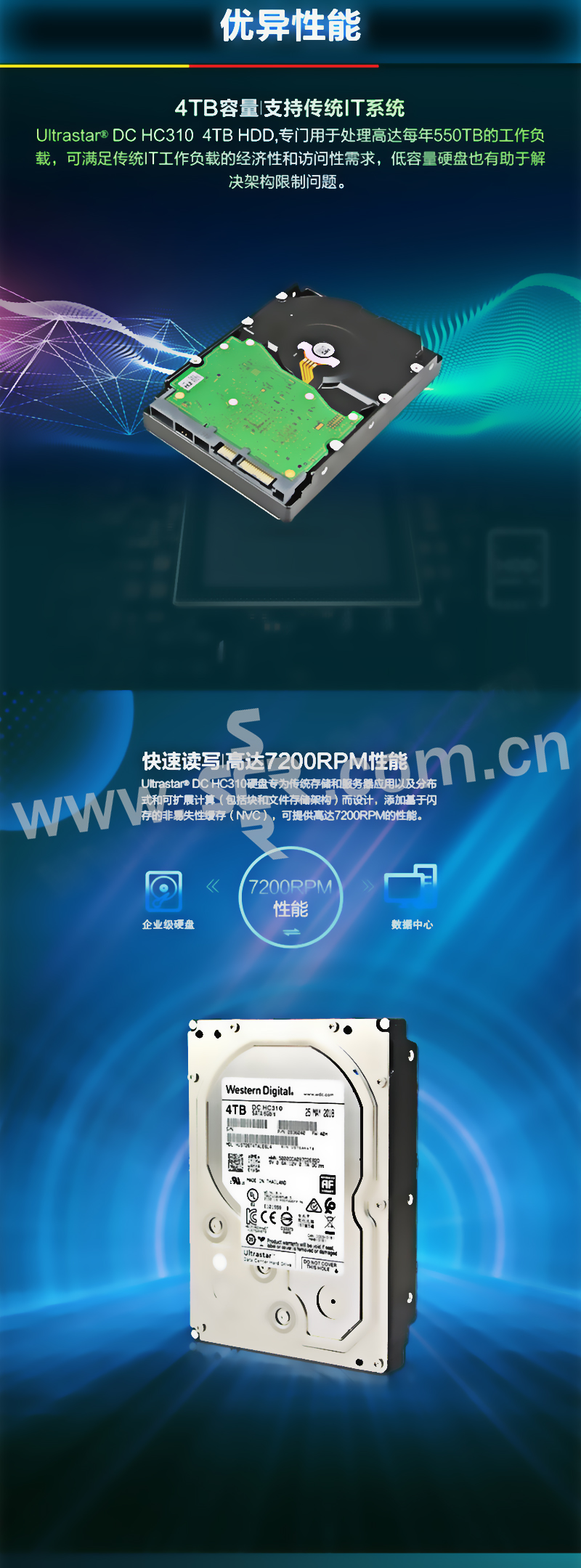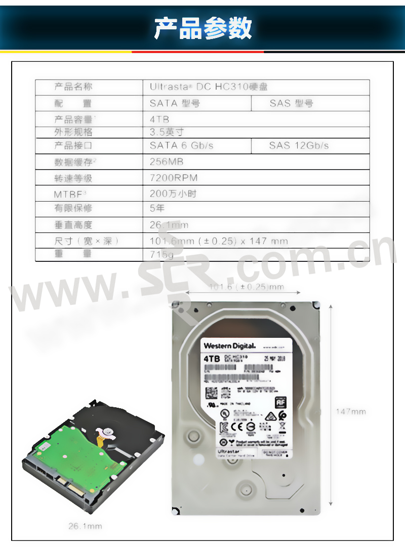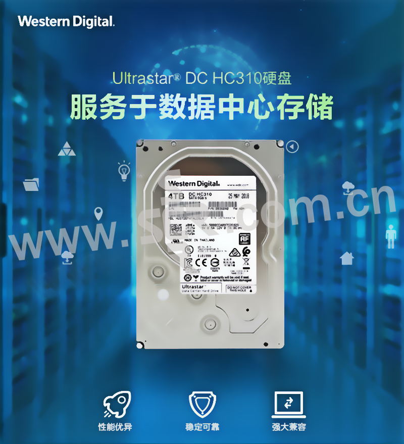 WD/西部数据 企业级硬盘 HUS726T4TALE6L4 4TB 7200RPM 256MB SATA接口 550TB负载/年 200W小时/MTBF 1块
