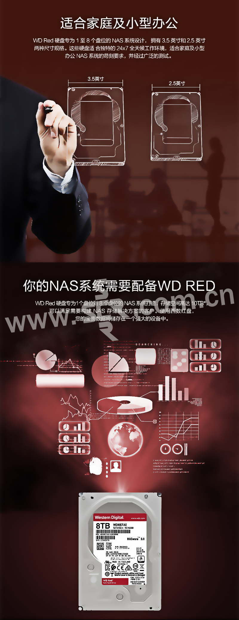 WD/西部数据 网络储存(NAS)硬盘 WD80EFAX 8TB SATA 6GB/s 256MB 红盘 1个