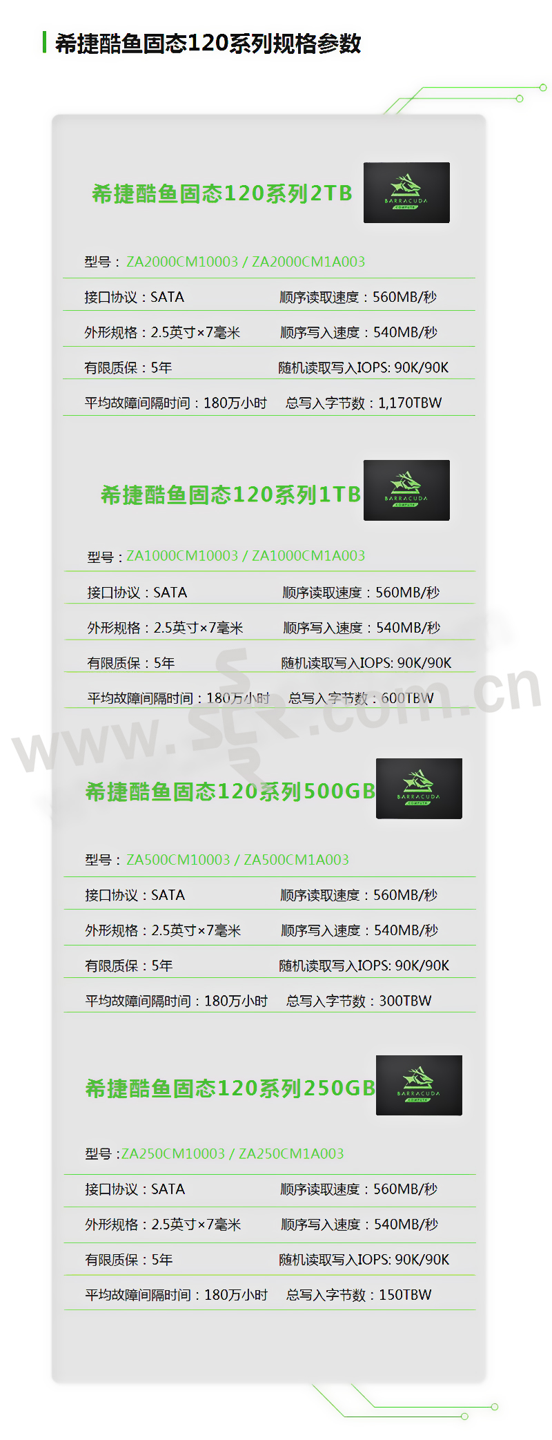 SEAGATE/希捷 SSD固态硬盘 ZA250CM1A003 250GB 2.5" SATA接口 酷鱼120系列 1个