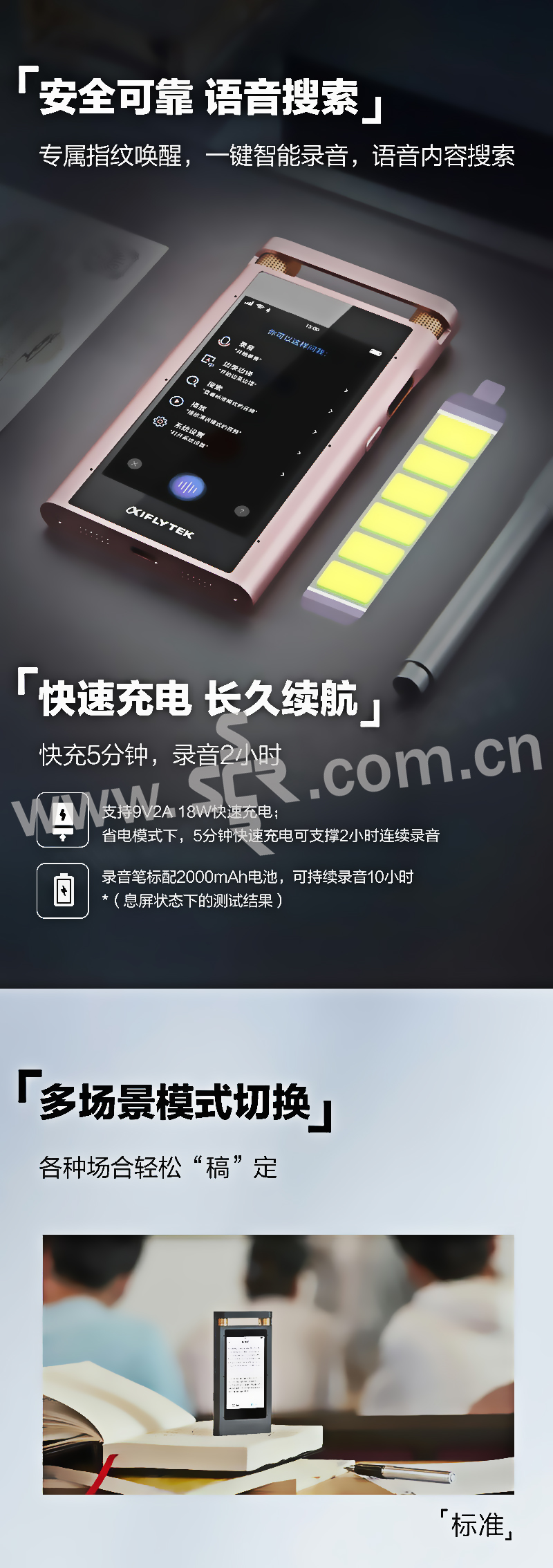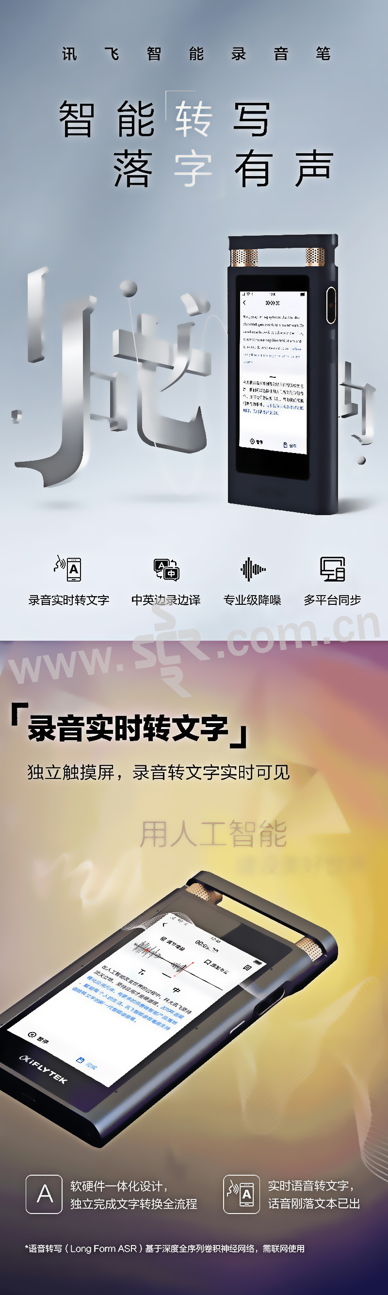 IFLYTEK/科大讯飞 智能录音笔 SR501 16GB 星空灰 实时录音转文字中英翻译 高清降噪触屏 1个