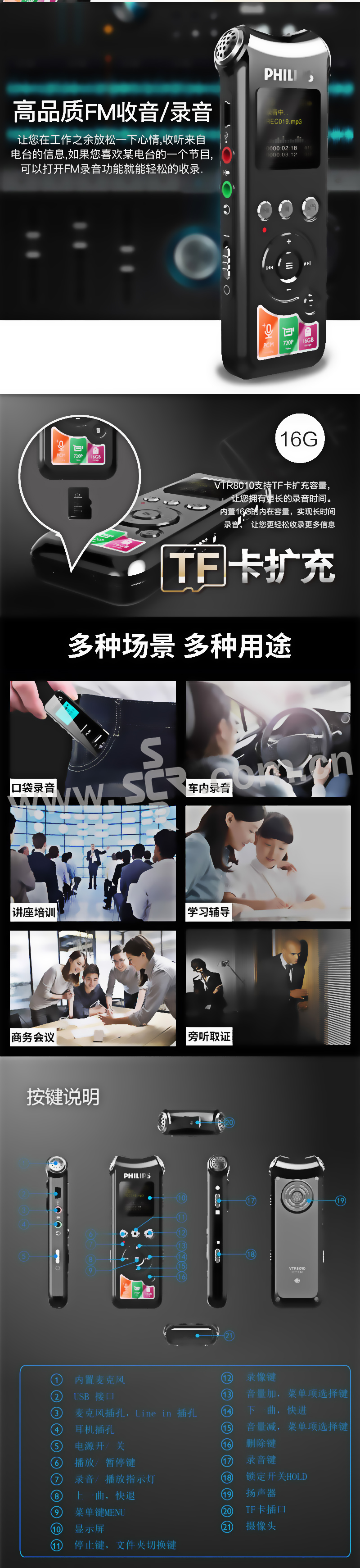 PHILIPS/飞利浦 录音笔 VTR8010 16G 1支