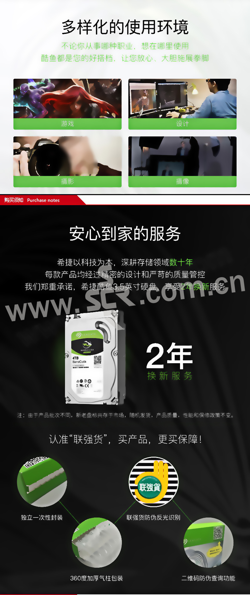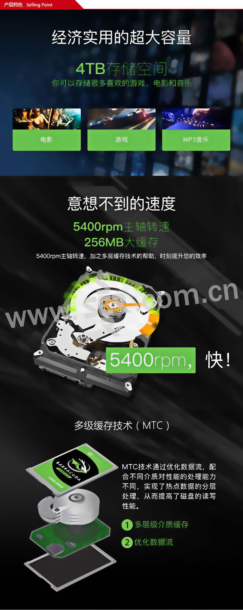 SEAGATE/希捷 台式机硬盘 ST4000DM004 4TB 256MB 5400RPM SATA接口 1个