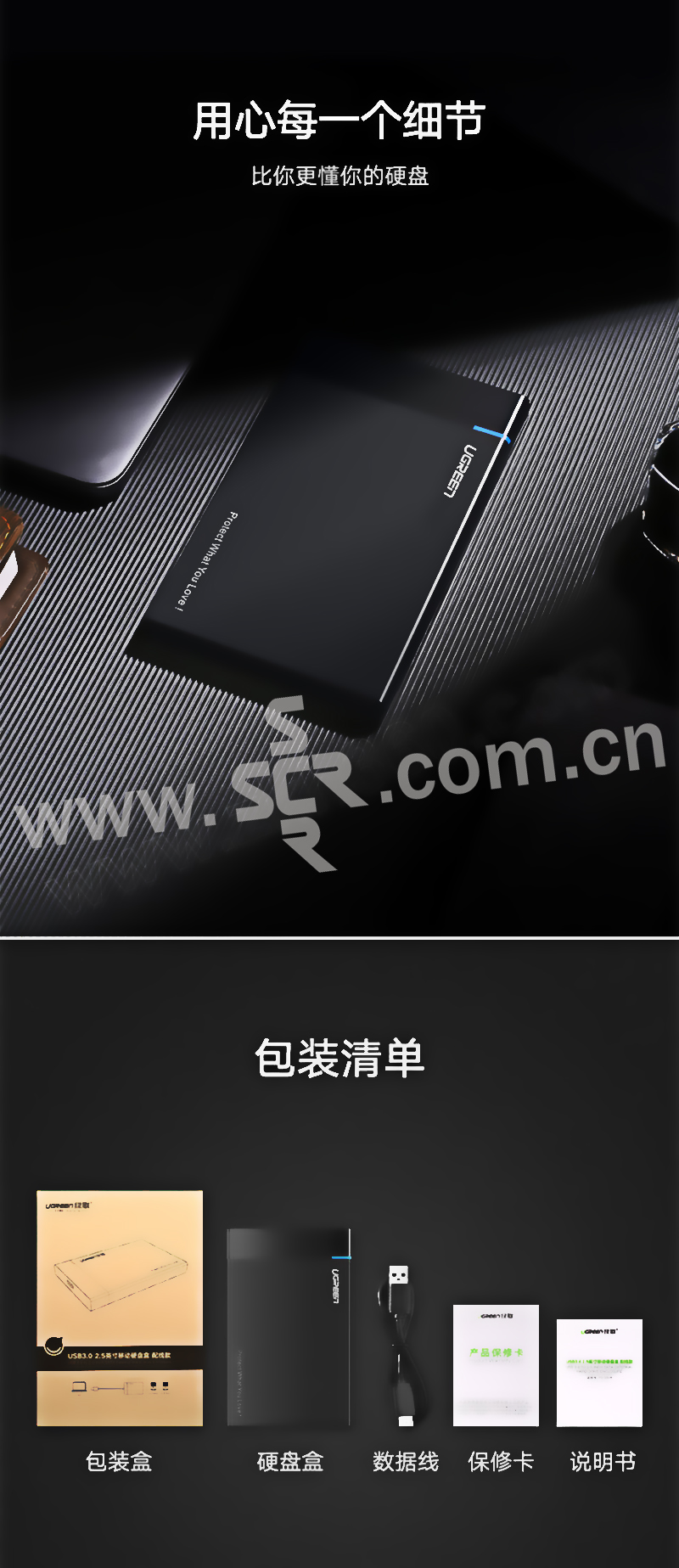 UGREEN/绿联 移动硬盘盒 50743 2.5寸 Type-c 可换线款 1个