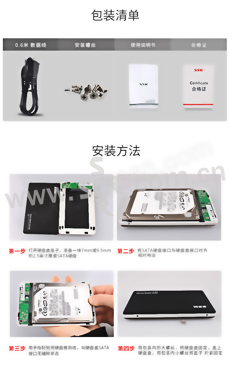 SSK/飚王 移动硬盘盒 HE-V300 2.5" USB3.0 SATA接口 支持SSD支持笔记本硬盘 黑色 1个