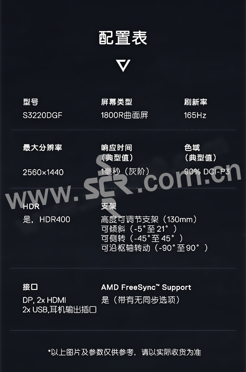 DELL/戴尔 2K超清电脑显示器 S3220DGF 31.5" 1台