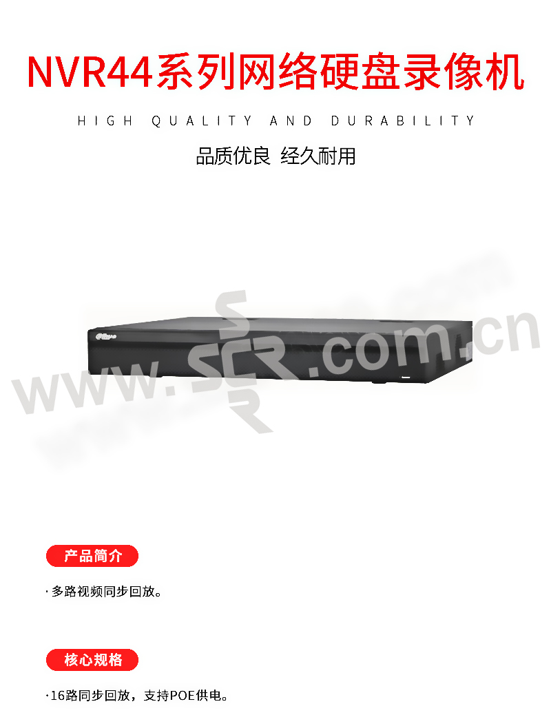 DAHUA/大华 NVR44系列网络硬盘录像机 DH-NVR4416-16P-HDS2 16路同步回放 支持PoE供电 1个
