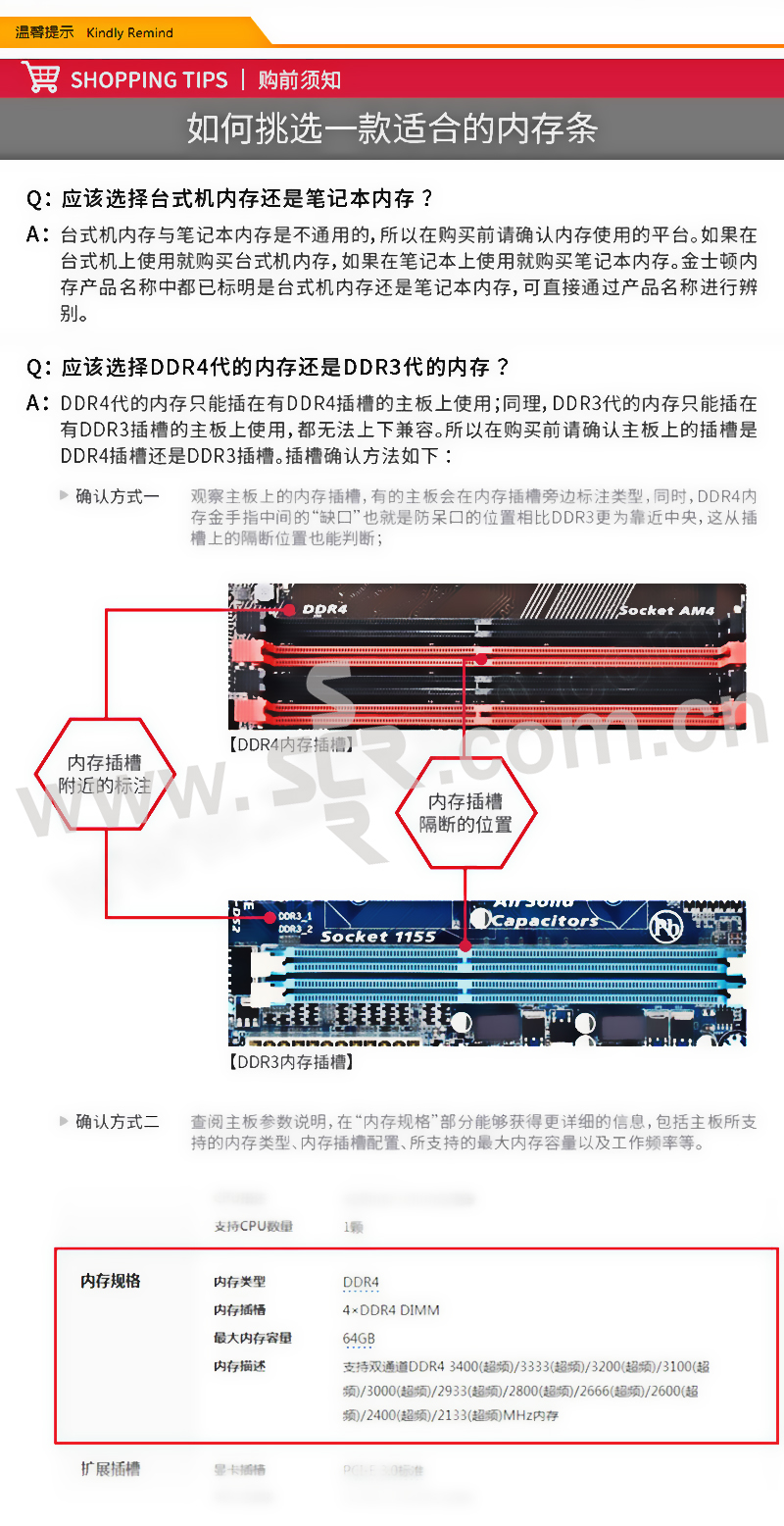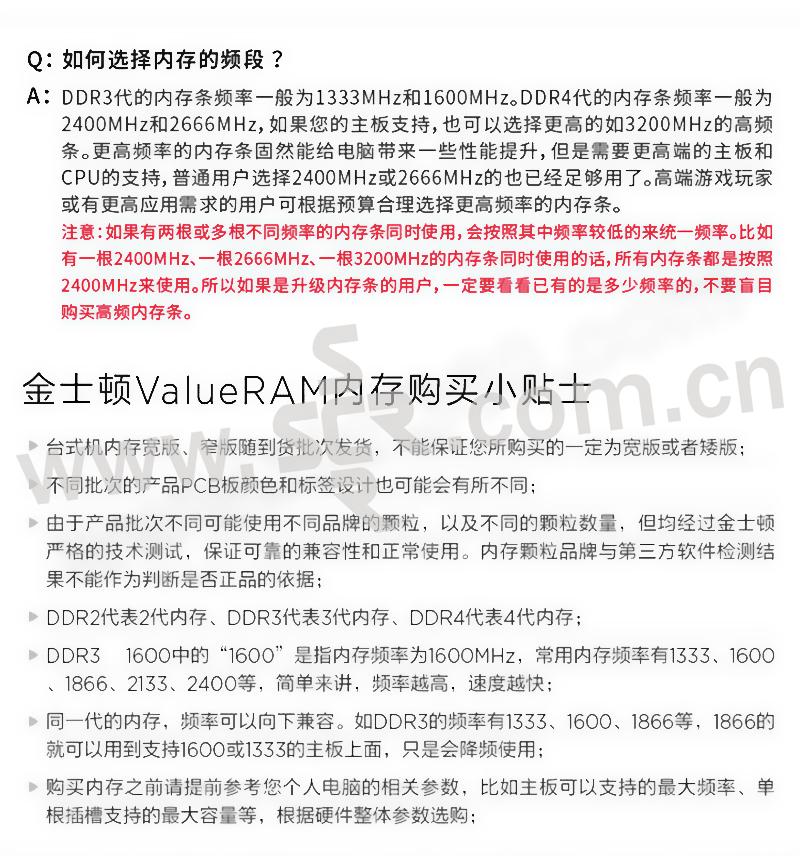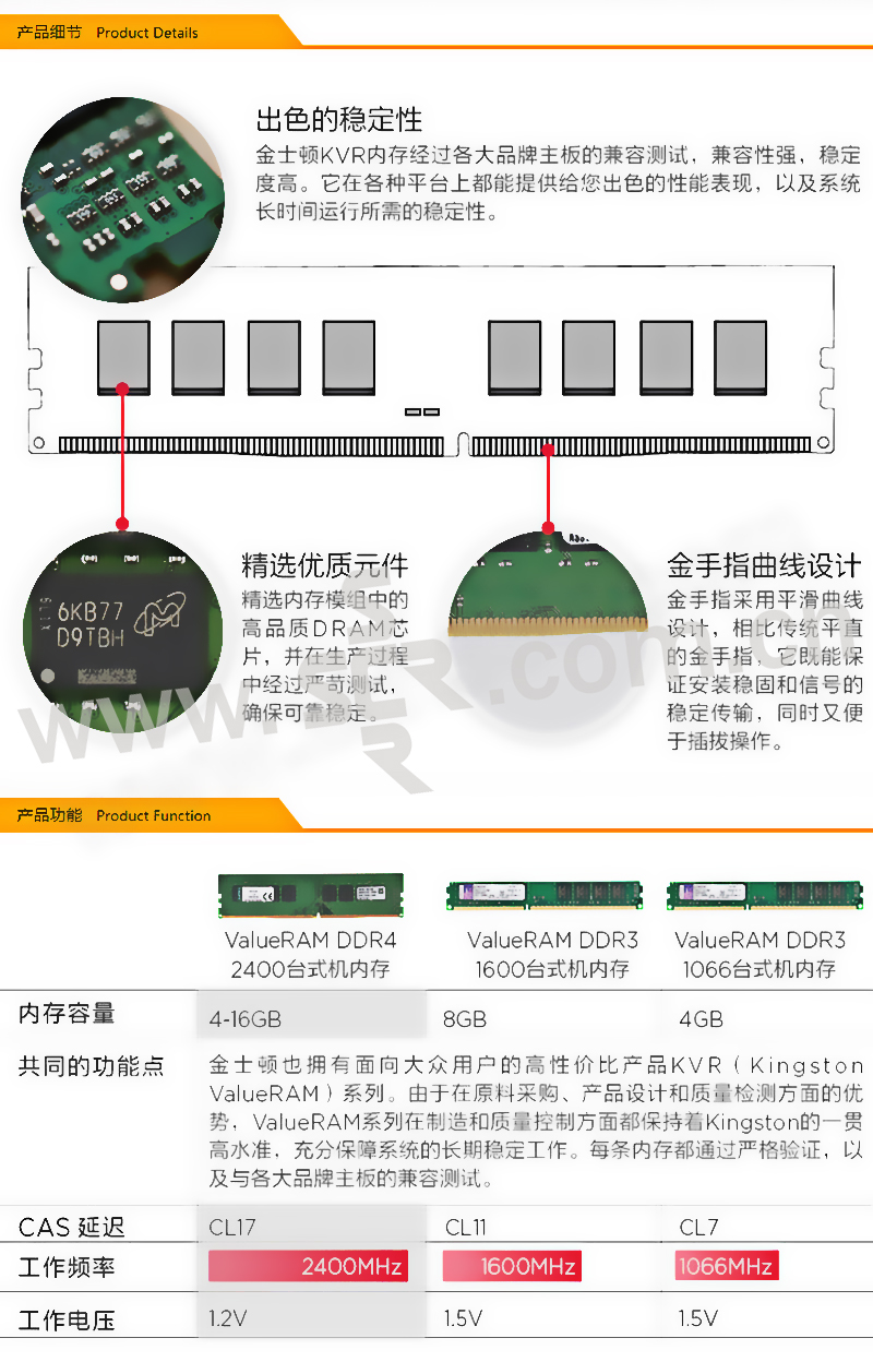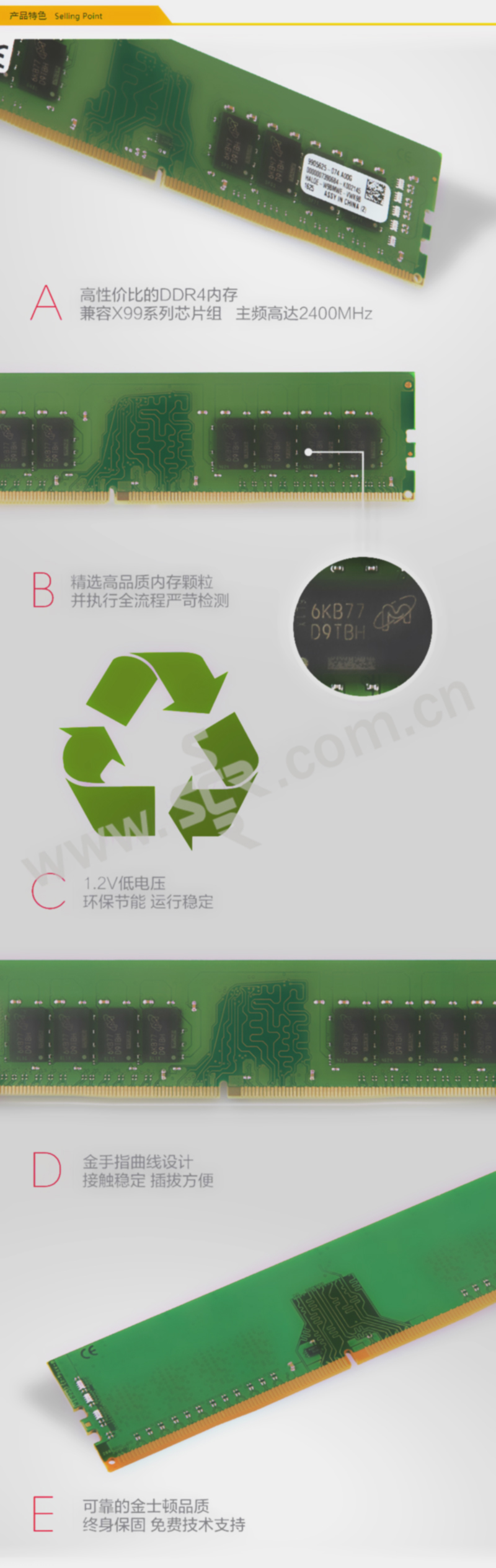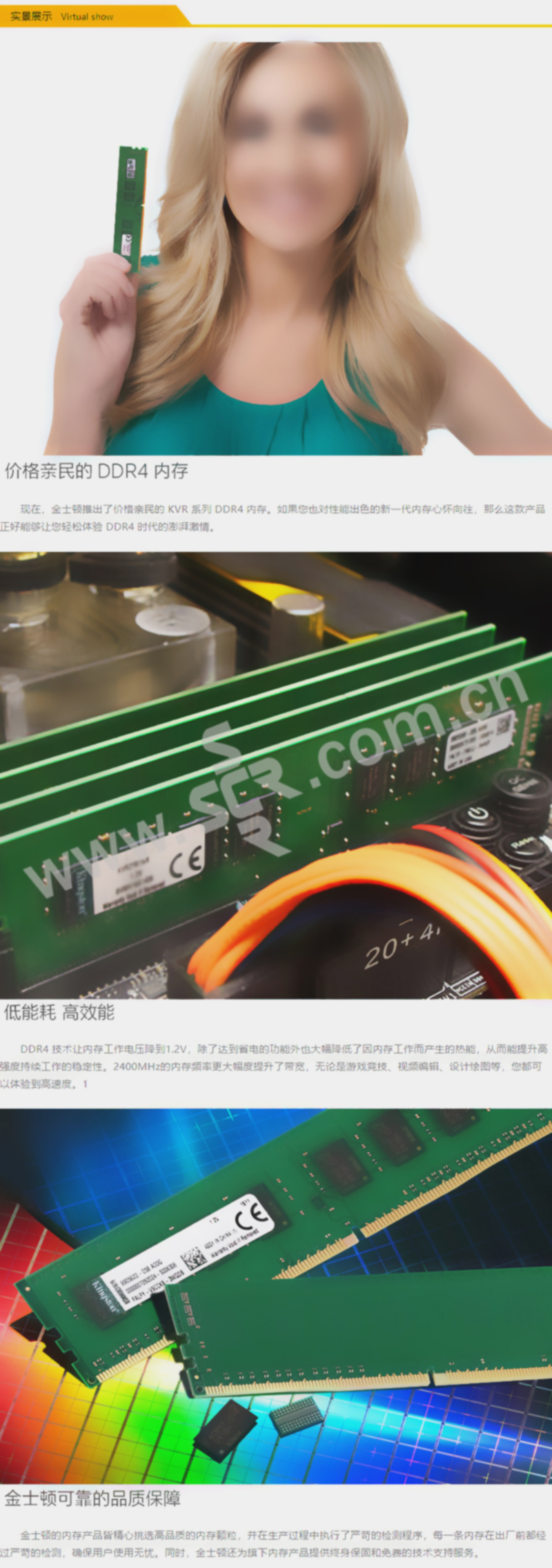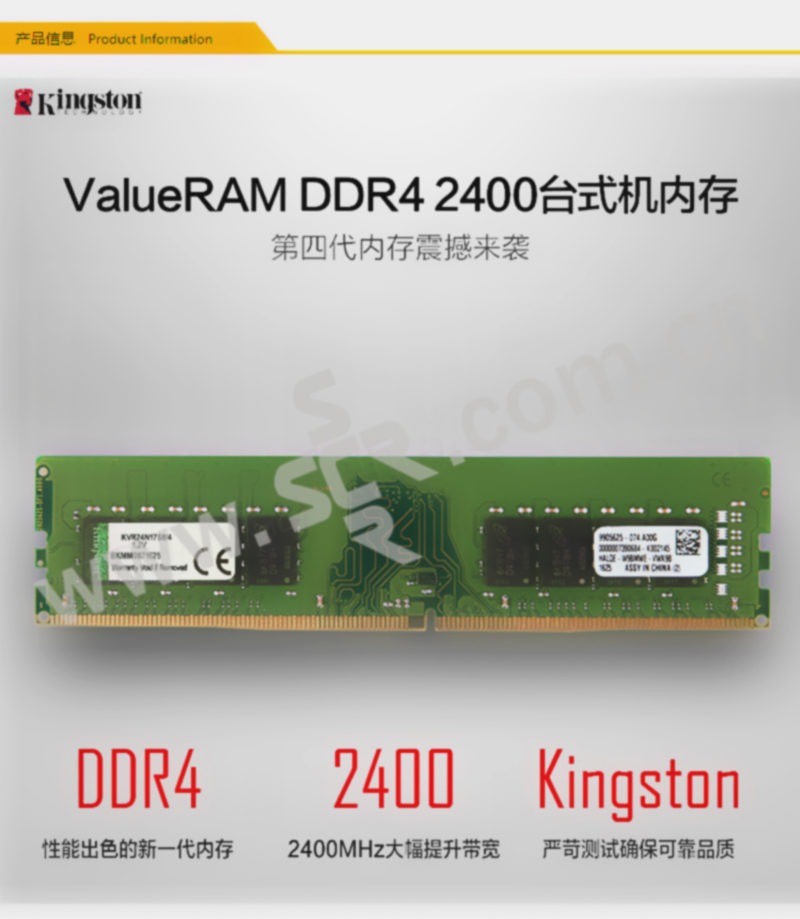 KINGSTON/金士顿 台式机内存条 DDR4 2400 4G 1.2V 1个