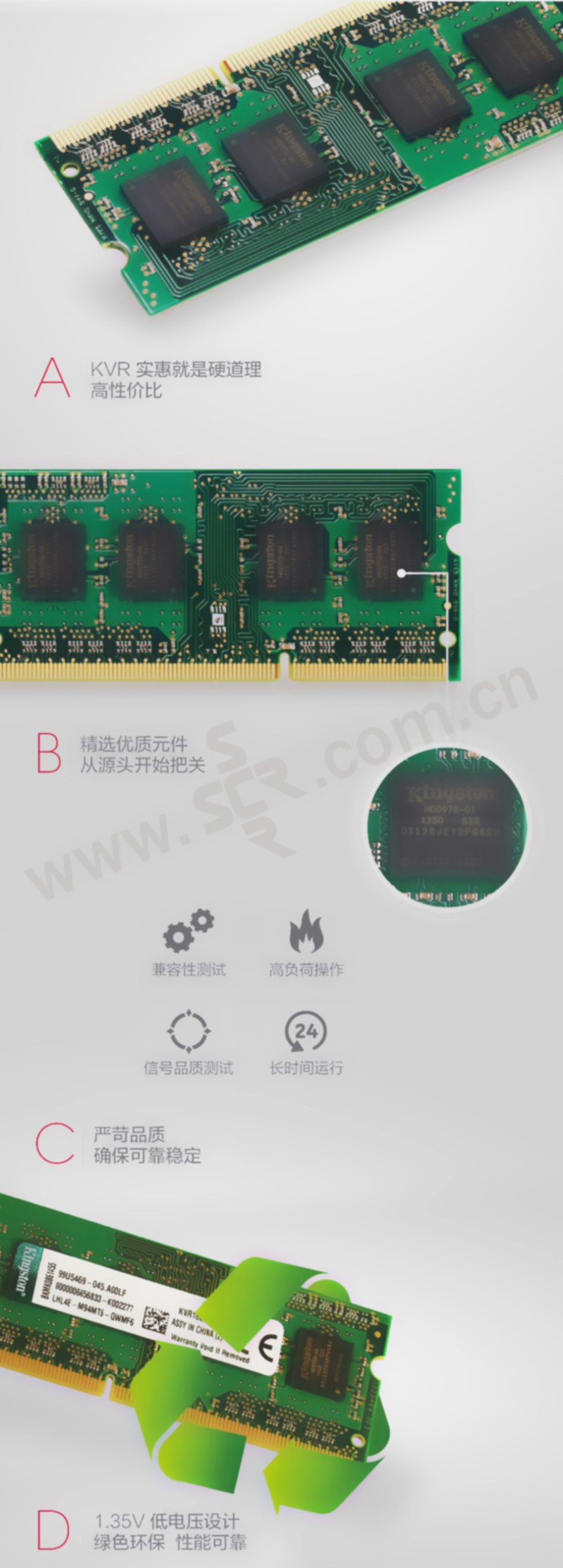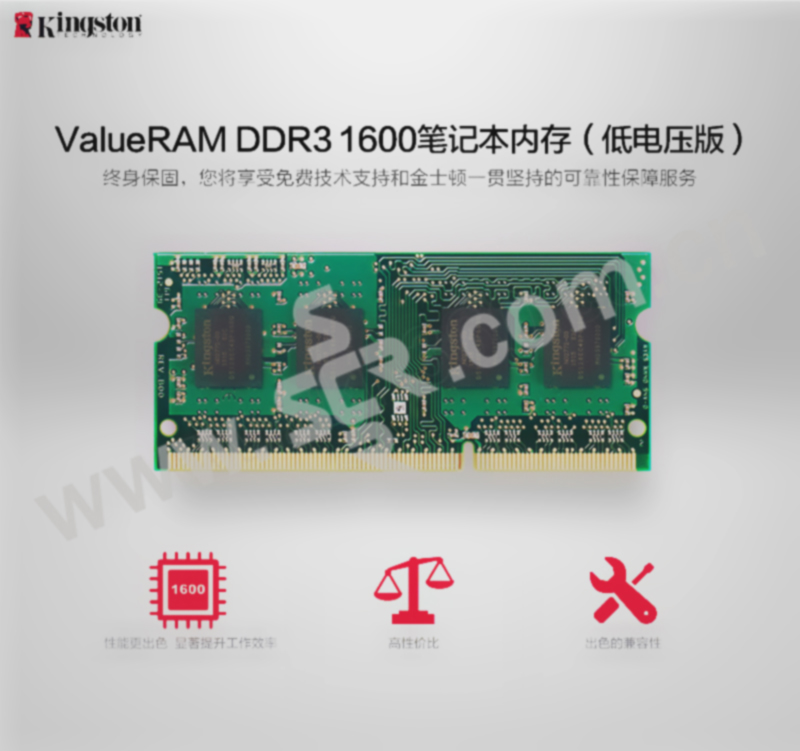 KINGSTON/金士顿 笔记本内存 KVR16LS11/4-SP 容量4GB 速度DDR3 1600 工作电压1.35V 1个