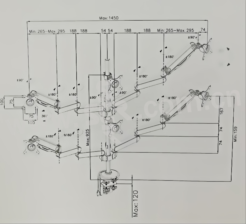 LOCTEK/乐歌 气弹式电脑支架(六屏) Q5S 黑色 1个