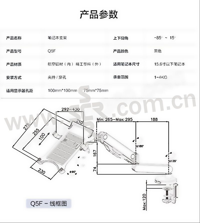 LOCTEK/乐歌 气弹式电脑支架 Q5F 黑色 1个