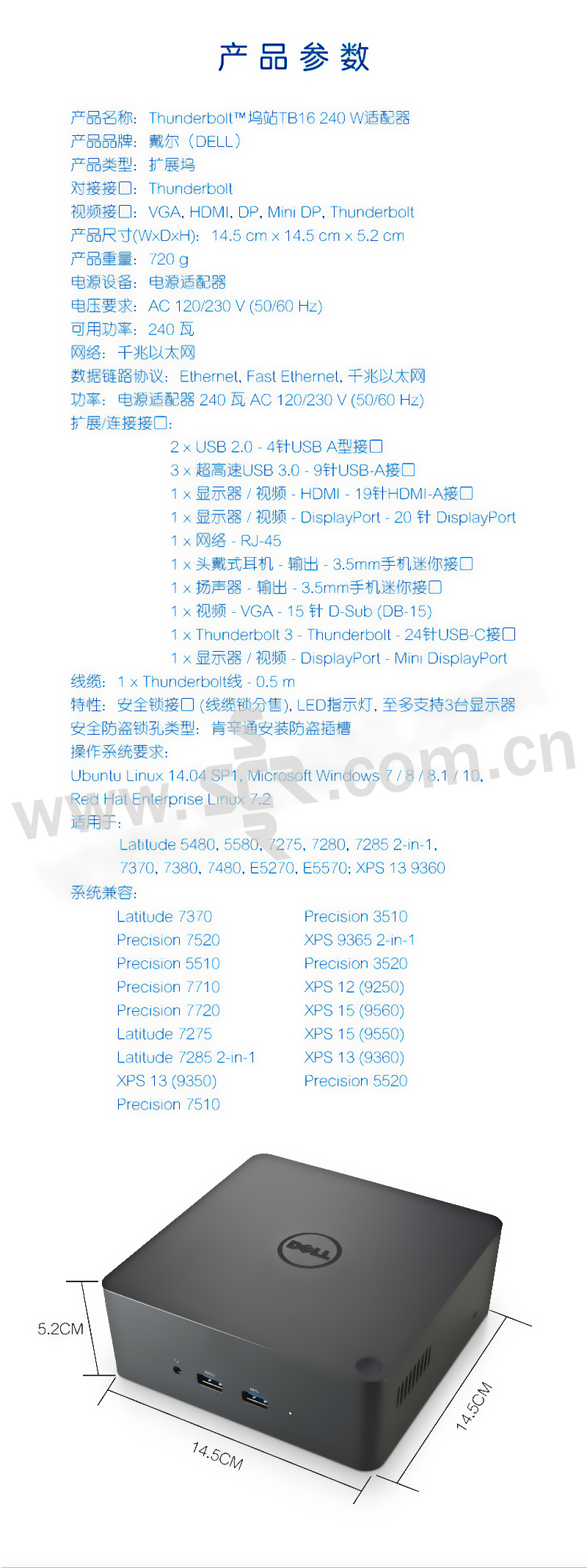DELL/戴尔 Thunderbolt坞站 TB16 240W 1个