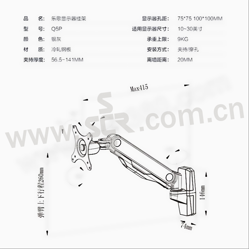 LOCTEK/乐歌 气弹式电脑支架(单屏) Q5P 黑色 1个