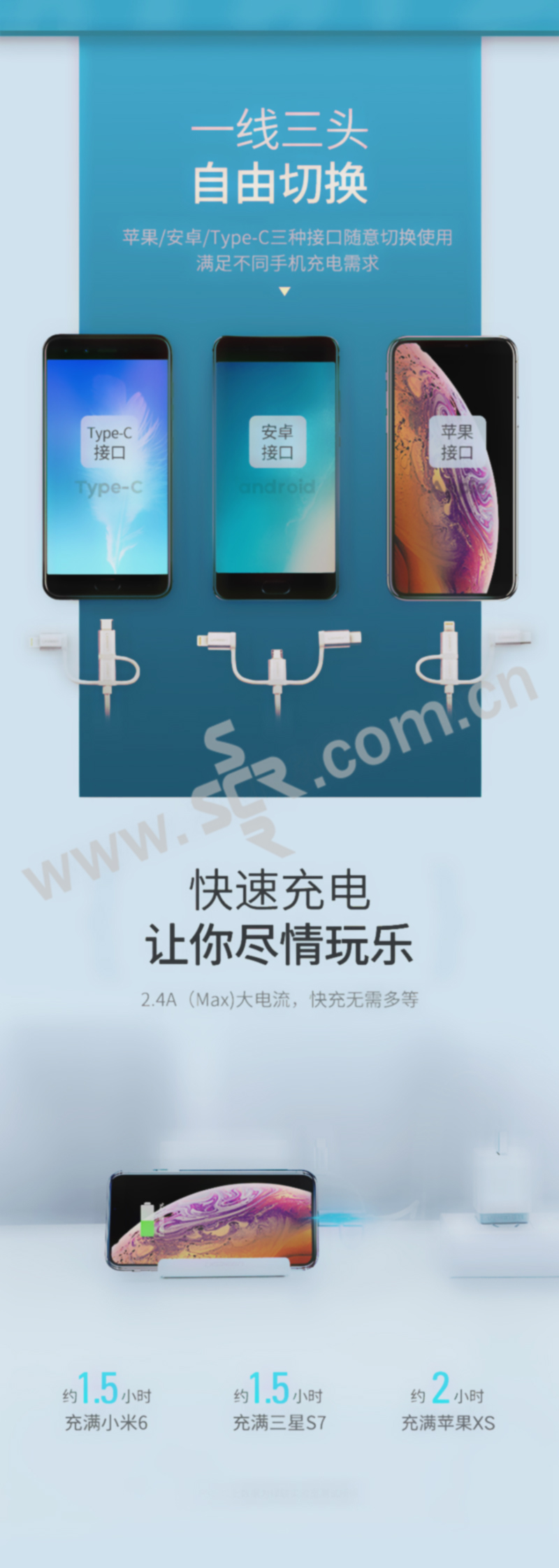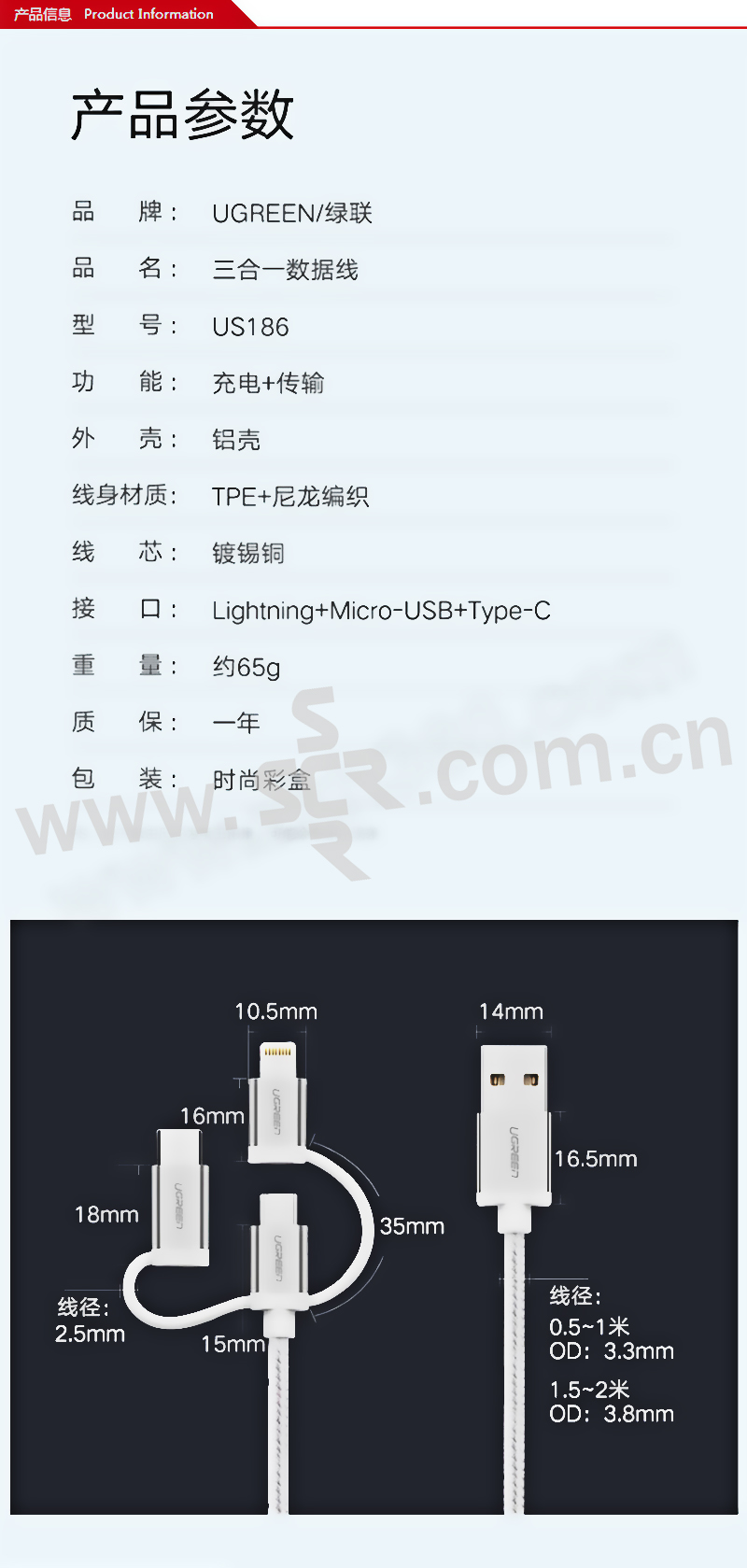 UGREEN/绿联 三合一快充数据线 50203 1根