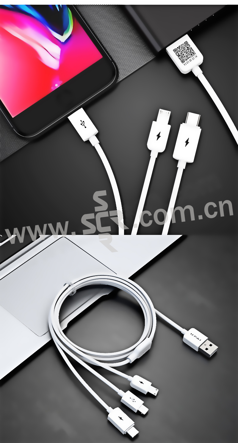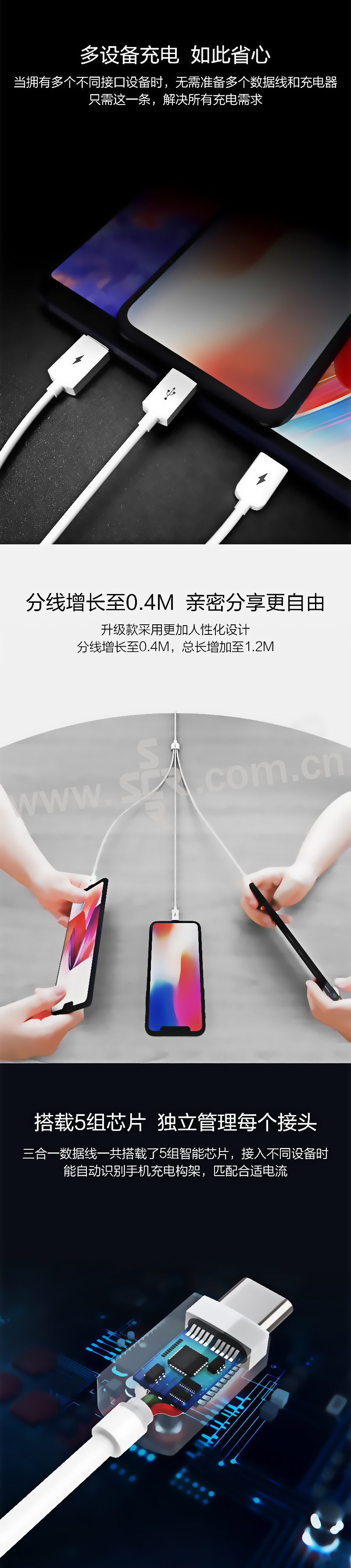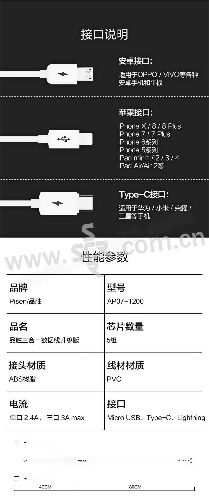 PISEN/品胜 三合一数据线 AP07-1200 1.2m 白色 1根