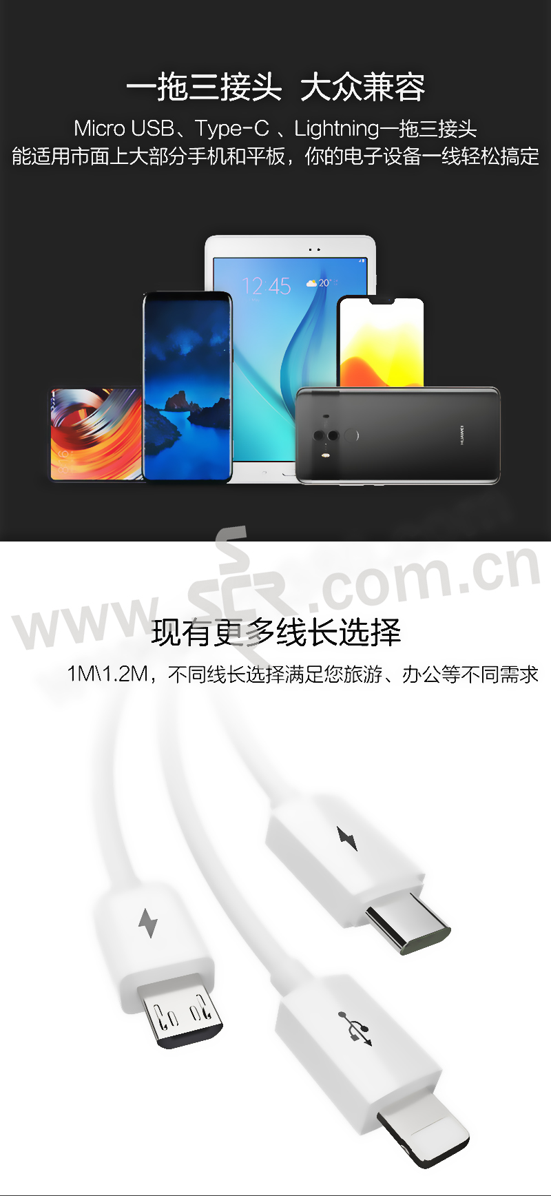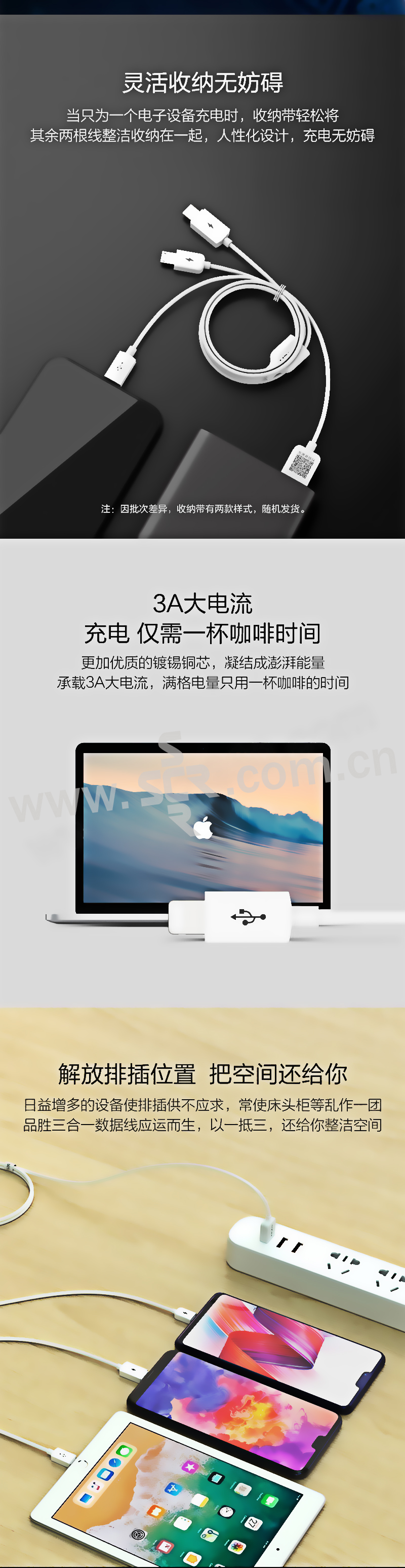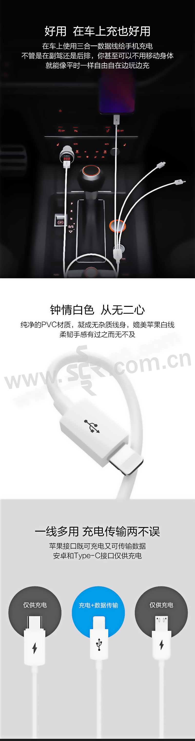 PISEN/品胜 三合一数据线 AP07-1200 1.2m 白色 1根
