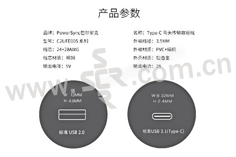 POWERSYNC/包尔星克 TYPE-C弯头安卓充电传输线 C2UFE810 1m TYPE-C 1根