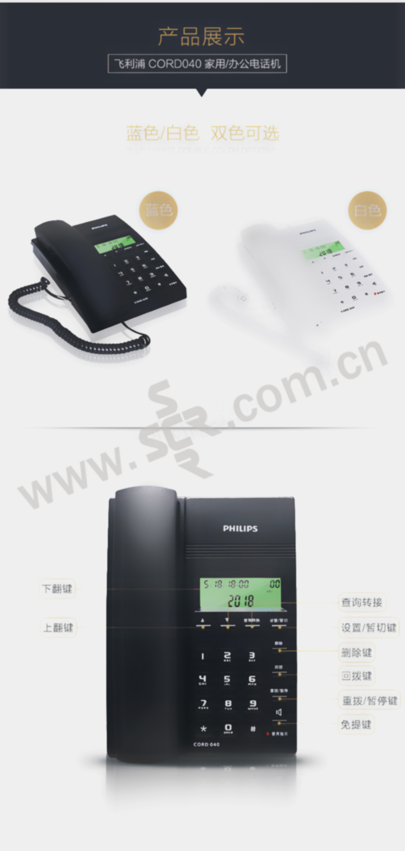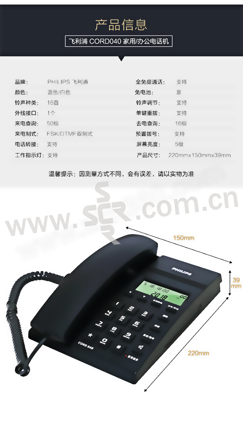 PHILIPS/飞利浦 电话 CORD040 深蓝色 1部