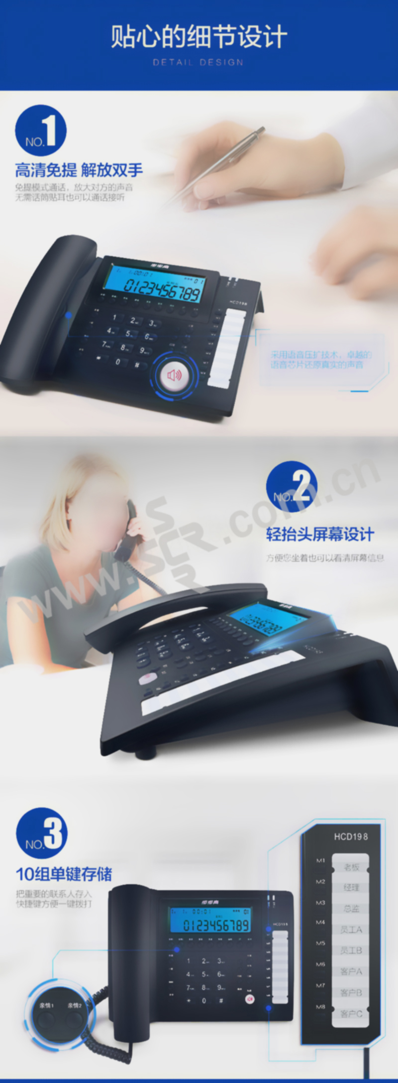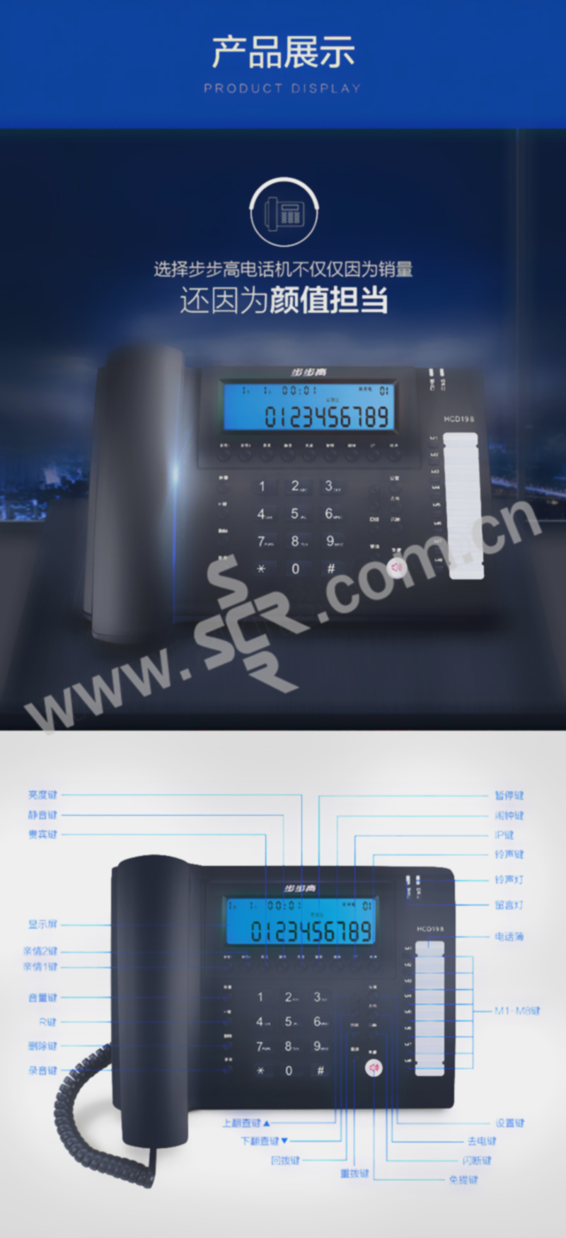 BBK/步步高 有绳电话机 HCD007(198)TSD 深蓝 硬塑 1台