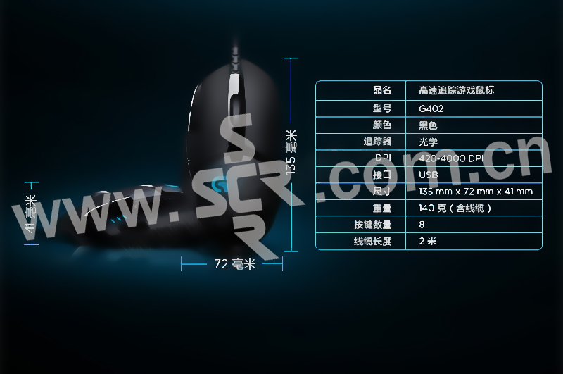 LOGITECH/罗技 有线鼠标套装 G402 黑色 1个