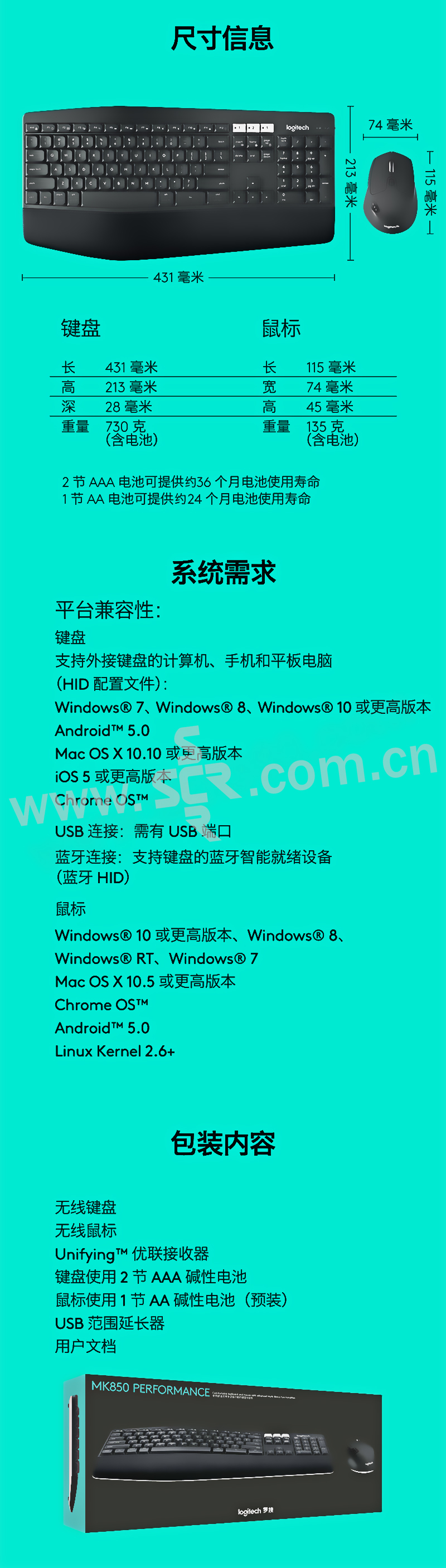 LOGITECH/罗技 无线键盘套装 MK850 黑色 1个