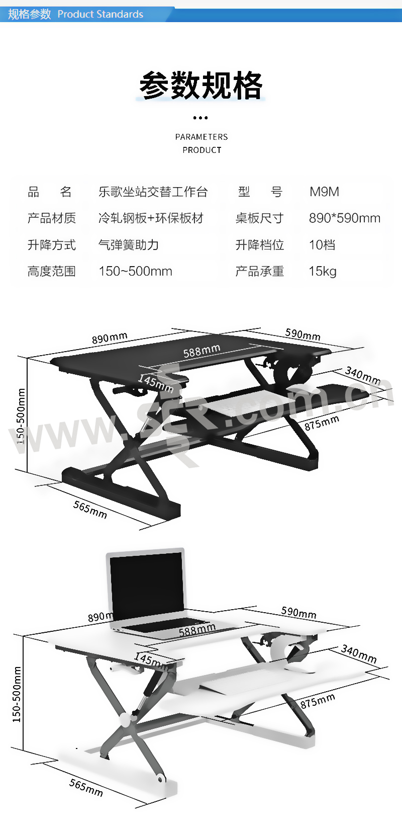 LOCTEK/乐歌 坐站交替升降台 M9M 黑色 升降范围170~500mm 承重15kg 桌板尺寸590×890mm 1个