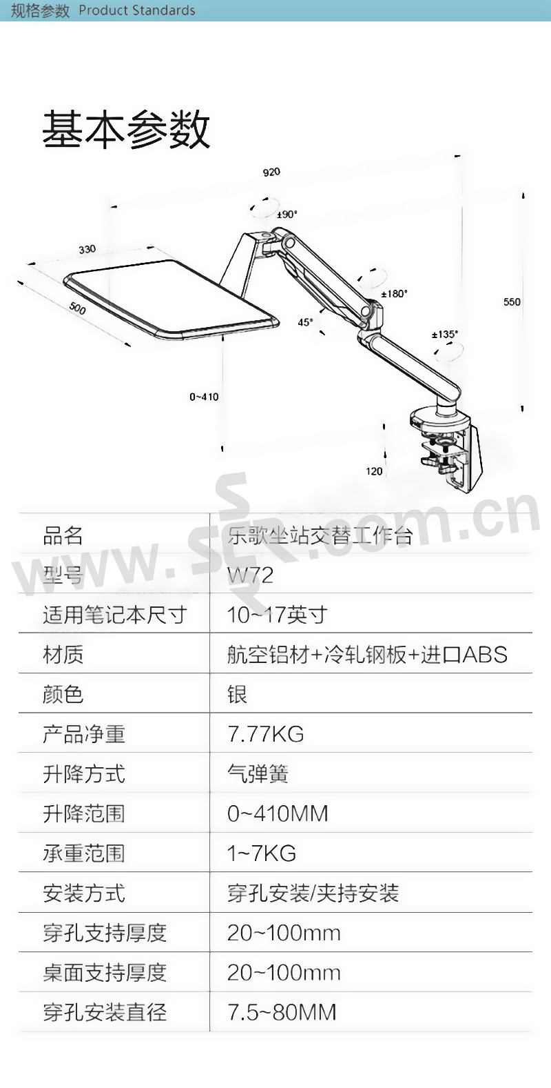 LOCTEK/乐歌 坐站交替升降台 W72 升降范围:0~410mm 1个