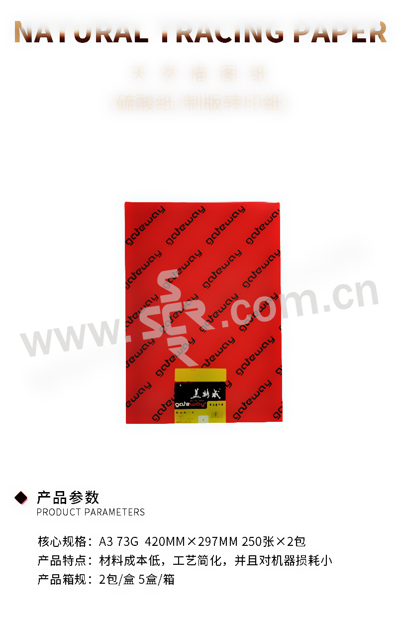 GATEWAY/盖特威 天然描图纸(硫酸纸/制版转印纸) A3 73g 420mm×297mm 250张×2包 1盒