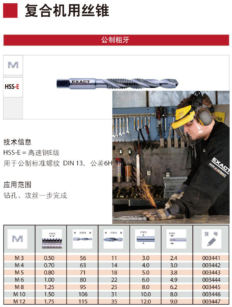·材质:HSS-E;用于公制标准螺纹DIN13,公差6H