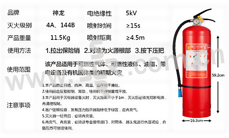 SHENLONG/神龙 手提式干粉灭火器 MFZ/ABC8 8kg MFZ/ABC8 1个