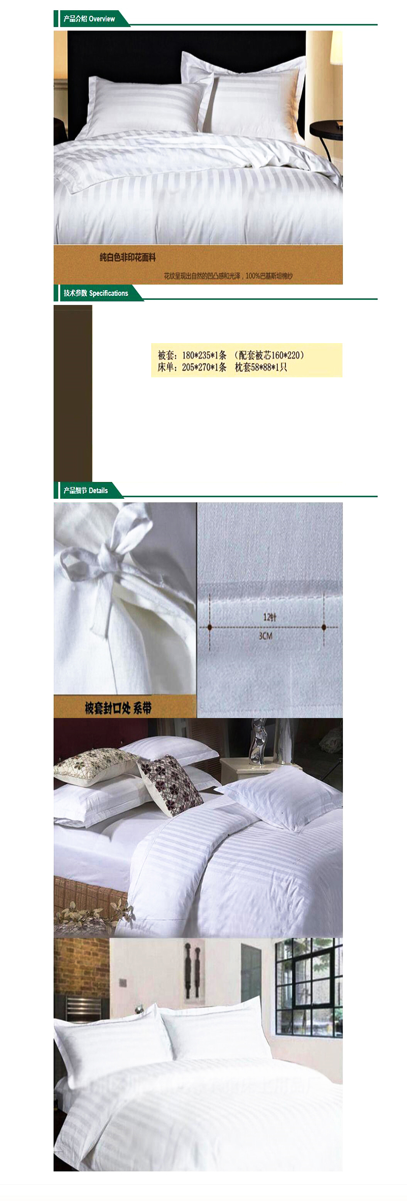 宾馆床品 客房布草 加厚缎条三件套