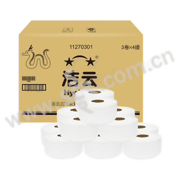 HYGIENIX/洁云 220米双层大卷纸 11270301 双层 120×95mm 625g×3卷×4提 1箱