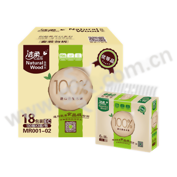 C&S/洁柔 低白度纸面巾(自然木软抽) MR001-02 200×133mm 3层 130抽×6包×3提 1箱