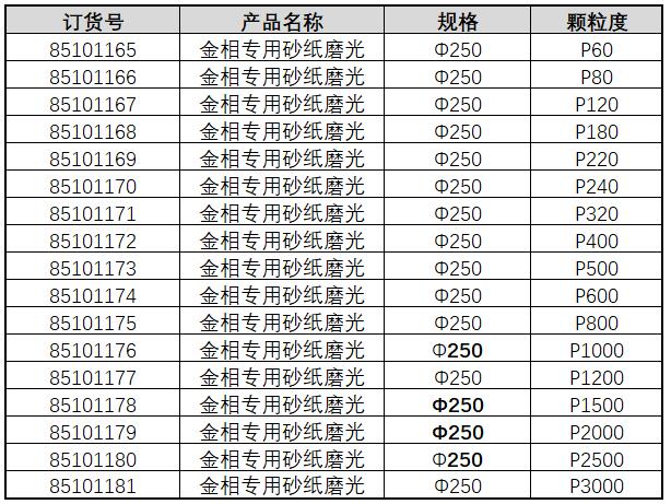 ·耐水型砂纸,带粘贴后背,可将砂纸,直接固定在磨盘上 ·磨料:黑碳化硅 ·砂纸按粒度分类:80#-5000#。 ·按直径分类:200毫米到305mm.