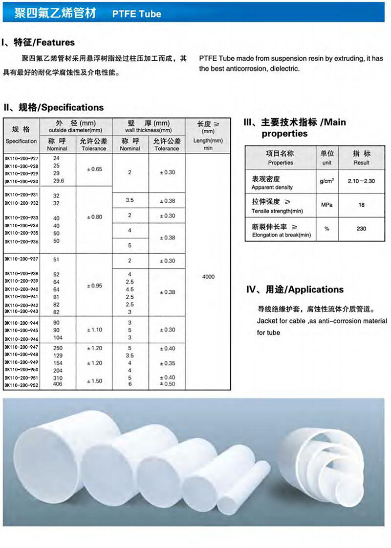 ·通过柱压加工而成,其有最好的耐化学腐蚀性及介电性能