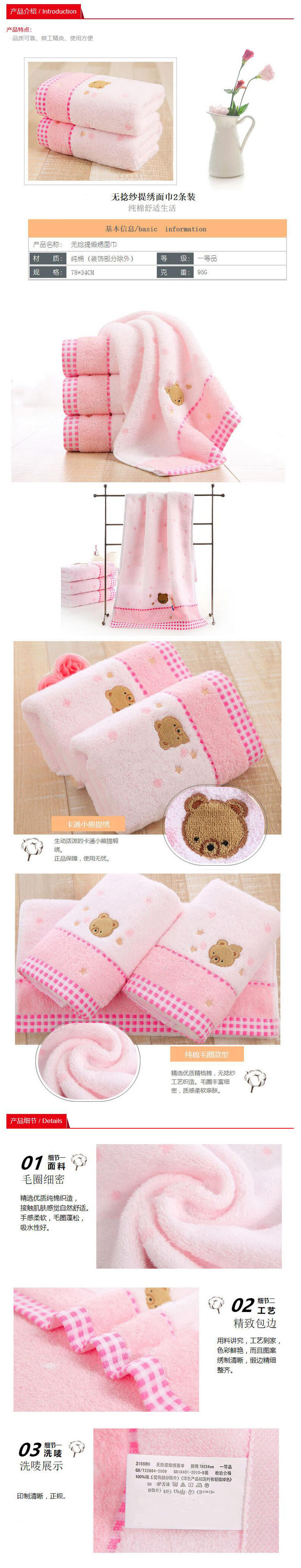 无捻纱提缎小熊绣花毛巾