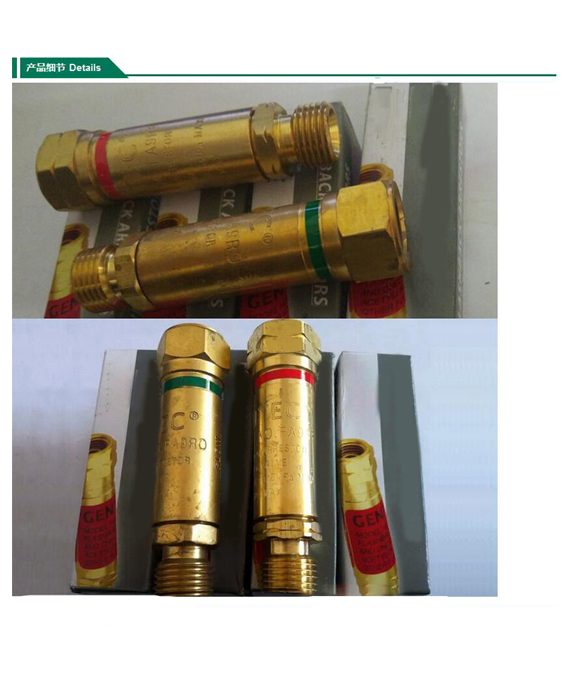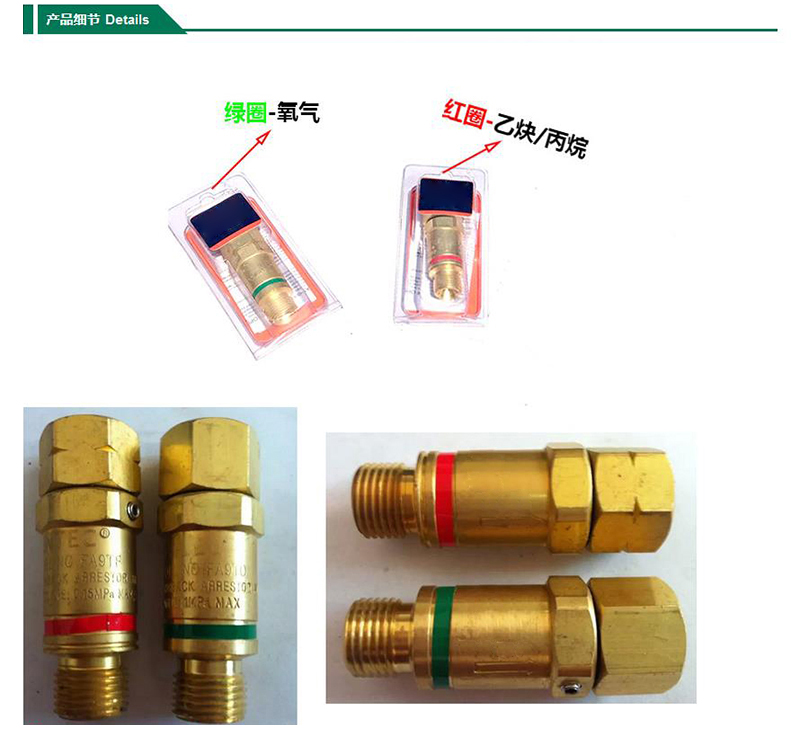 ·微孔散热型火焰熄灭装置确保火焰熄灭 ·气体单向阀在回火过程自动将气源瞬间切断 ·具有自动复位功能可连续作业 ·直接连接在气体减压器的出口上使用