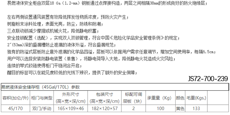 J13455 JS72-700-239 45加仑/170L 182x120x57cm 双门/手动 1335kgs 6597.44