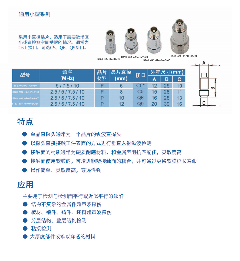 晶片材料 P 晶片直径 6mm 接口 C6 外壳尺寸 12×25×10mm |