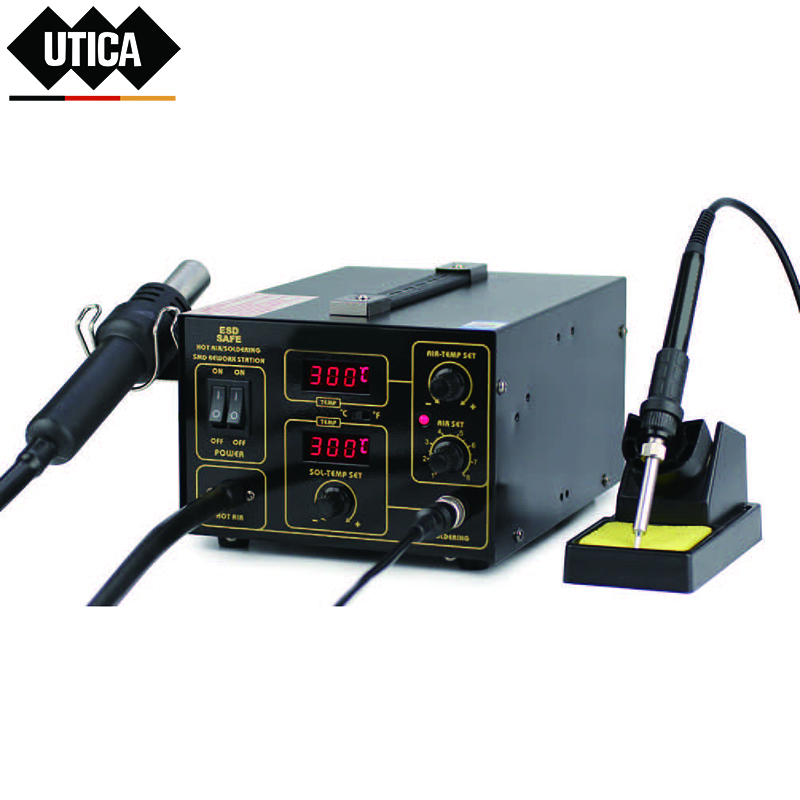 ·采用PID程序以极速100ms为周期实时跟踪风枪出风口温度和烙铁咀温度,并进行实时校正!温度稳定度高。 ·风枪/烙铁带有F/C显示切换功能。 ·风枪手柄线采用耐高温硅胶线〔300度的烙铁咀接触硅胶线30s无损伤)。 ·机器各部分器件设有自我检测功能,全智能的超温、短路、开路、过载等故暲提示和保护功能。 ·风枪、烙铁二合一,整机功率大、拆焊轻松、功能丰富、适用性强。 ·精确的温控设计,控温精准,精确显示当前风枪和烙铁的实际温度,让您焊接过程,焊接变得更轻松,同时避免损伤娇嫩元件。 ·增设华氏度/摄氏度转换
