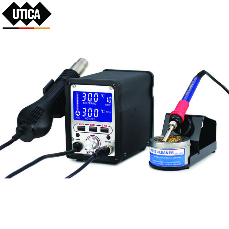 ·大屏幕LCD显示屏,功能指示一目了然,动态风速显示美观大方。 ·采用高集成电路,双面板贴片工艺,机身精致小巧,功能强大全面专业且运输方便。 ·掌握核心技术,采用PID程序以极速20ms为周期实时跟踪出风枪风口温度和烙铁咀温度,并进行实时校正! 温度稳定度极高,温度波动范围≤±1C ·人性化设计,风枪部分设有手动/自动功能,可根据使用环境情况进行设置,在频繁使用风枪时可选择手动省去反复升温的时间,方便快捷,提高工作效率。 ·最高安全防护,独创的ABS风机防暴死功能,当风机出现异常时停止工作温度失去控制时,