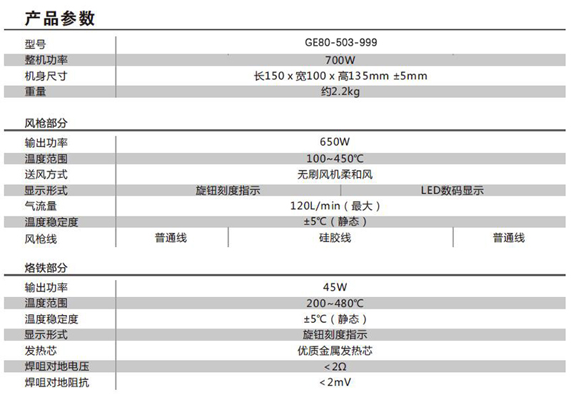 J152559 GE80-504-1 650W 100℃~450℃ 120L/min 150×100×135mm ±5mm 2.2kg 1515.80