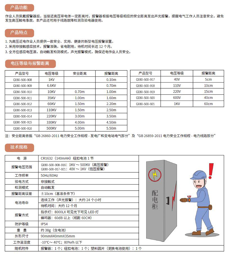 ·全方位感应电压源,自动触发检测模式,声光报警模式,确保近电作业人员安全。